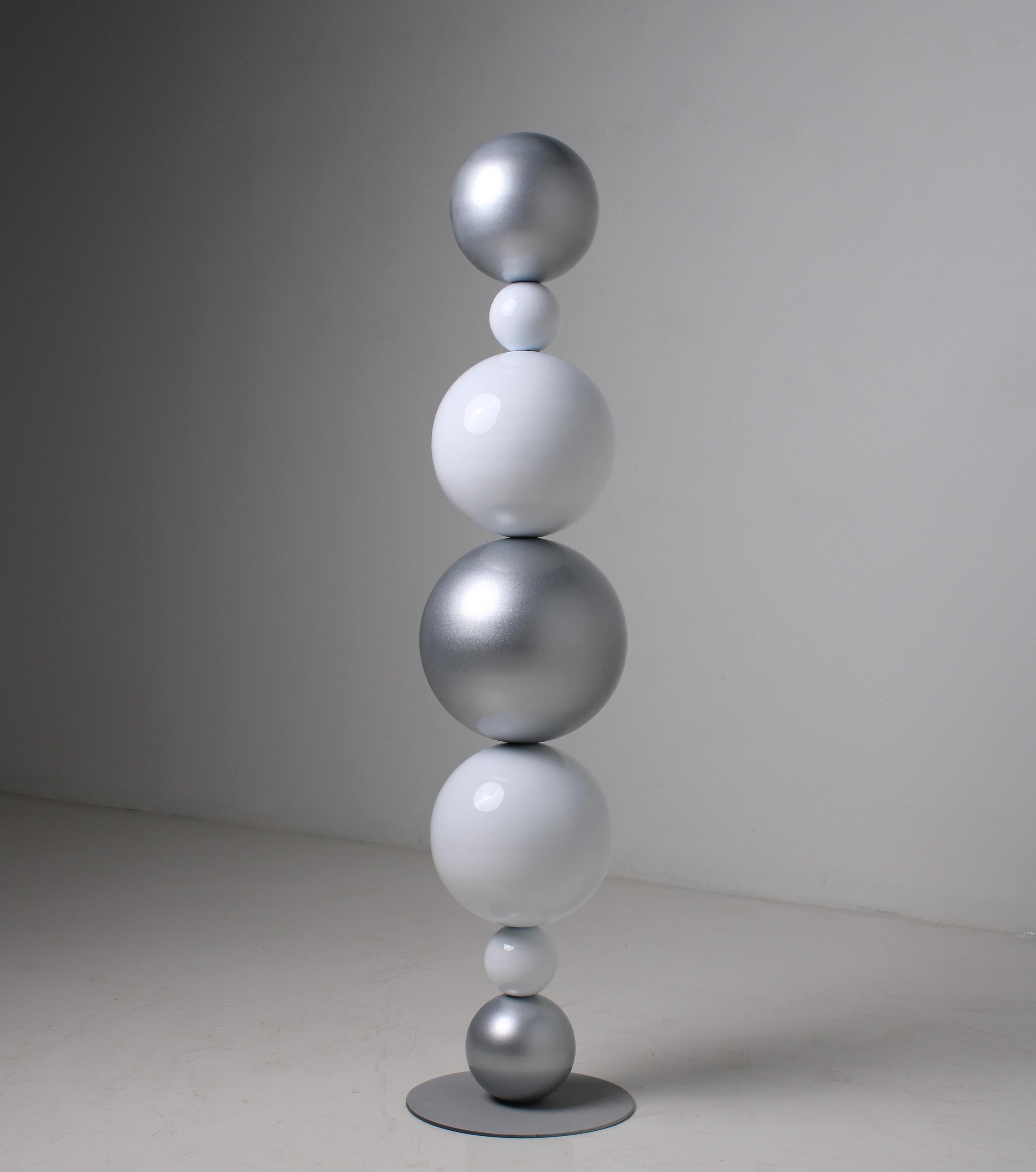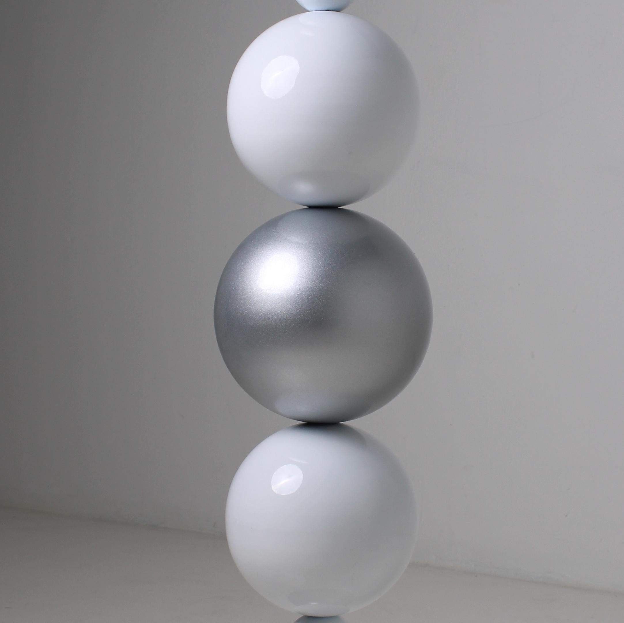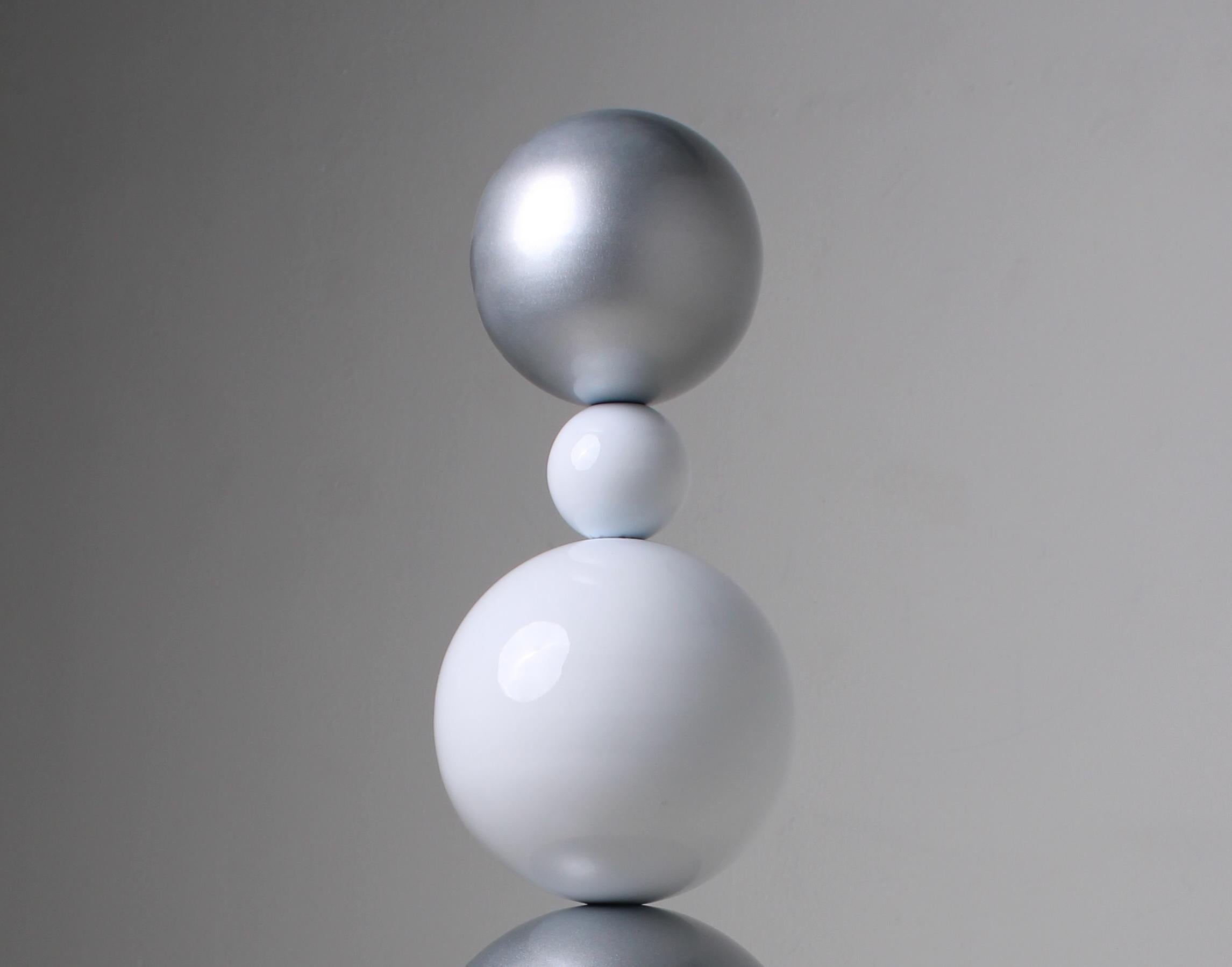 His signature, playful works made of reflective steel spheres capture the symmetry, volume and balance present in both nature and design. These spheres are placed together to create new forms that reflect the vibrant and dynamic nature of the world around us, and the impact of our ever-changing perspective. Kolodny’s site-specific and shapeshifting installations construct a kinetic and immersive environment for viewers, creating space for moments of mindfulness and self-reflection within their experience. Transcending the traditional boundaries of art, the artist creates new worlds with each installation, that are at once both fantastical and organic. His practice seeks to encourage viewers to engage with the world around them in new, more meaningful and imaginative ways, inspiring a childlike wonder.
