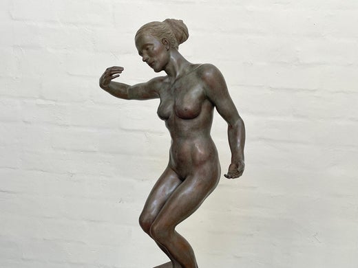 The sculptures of Margot Homan (1956, Oss) show a perfect command of the old craft of modelling and sculpting, with which she continually develops an age old tradition. In her artistic education at the Tilburg Art Academy, the possibility to study and create figurative work lacked, so Homan felt obliged to study the anatomy of the human body all by herself. Homan looks for the inner balance in humans, which she literally translates in her sculptures. The connection to sculptures from antiquity is strong, but also bears apparent differences. An important feature of antique sculptures is their ultimate calm, while Homan’s sculptures are captured in movement, balanced, dancing or floating. The focus is on energy and willpower. The aim of the artist is to communicate from the heart, to provide rest, comfort and beauty to the viewer.