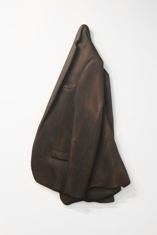 SUIT JACKET is a sculpture by Ray Padrón created in 2019 from burned poplar wood. The piece belongs to a series of work centering around clothing items and ...