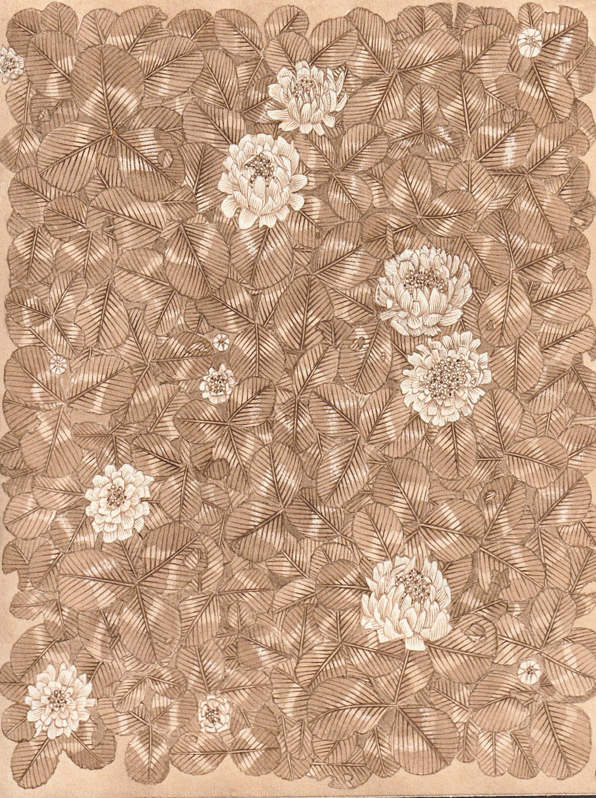 Walnut, India Ink, Gouache, Carbon Pencil