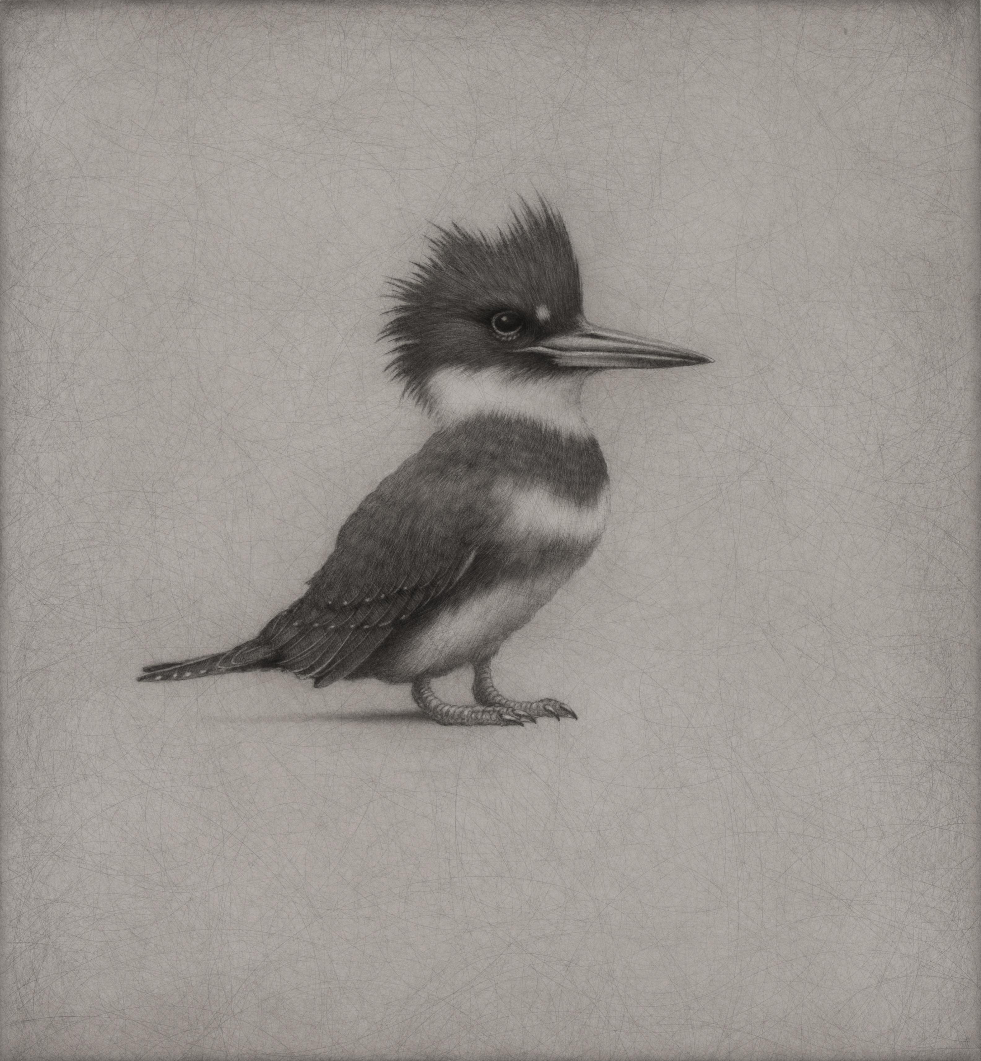 Two grey herons reunite at a lake. One stands in the shallow water while the other returns in flight. The birds appear in a stylized manner against the water, s...
