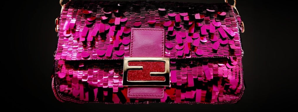 Iconic medium-sized Baguette bag, finely embroidered all-over with pink sequins in different shapes and sizes for a 3D effect and decorated with ...