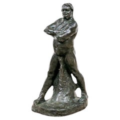 Art Deco Bronze Statue of a Man "Le Bendeur" by Jean de Roncourt