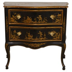 Italian Diminutive Walnut Hardwood Three-Drawer Bombe Side Chest. All Drawers operationg smoothly. Wood back. Dimensions: 18" in width, 10.5" in depth and 19 inches in height.