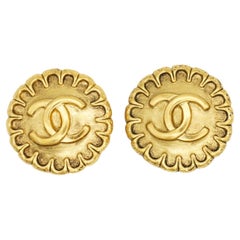 A fantastic pair of vintage Chanel clip on earrings. A medium sized and easy to wear pair of earrings in gold tone metal with Chanel Paris written on the gold tone metal in enamel w...