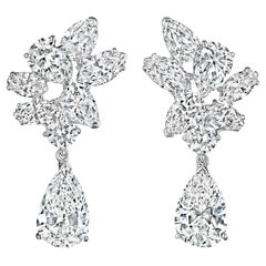 A refined pair of floral dangle earrings crafted in luminous 18K white gold, showcasing the artistry of timeless design. Each earring features a delicate cluster of 0.09 carats of vi...