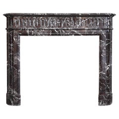 This classic French apartment fireplace surround from the 19th century is crafted from the rare and highly sought-after Italian Bleu Fleuri marble, also known as Bardiglio Fiorito—a ...