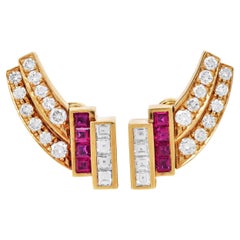 18K Gold 0.90ct Squared Ruby 0.04ct Diamond Hoop Earrings