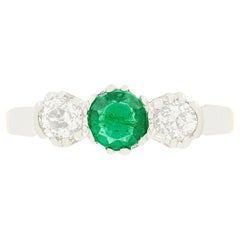 Platinum Stamped, Edwardian Style Emerald Diamond Oval Cluster Ring