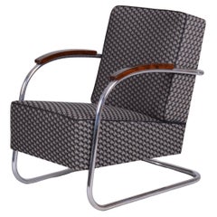 Armchair, model ‘H-269’, designed by Jindřich Halabala. Produced by Spojené UP závody Brno in former Czechoslovakia, 1930s. Armrests in stained beech, recently reupholstered in red v...