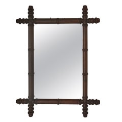 A faux-bamboo mirror from France, turn of the century circa 1890, with a lovely amber-brown patina in the frame. This tall mirror features rectangular proportions and symmetry to han...