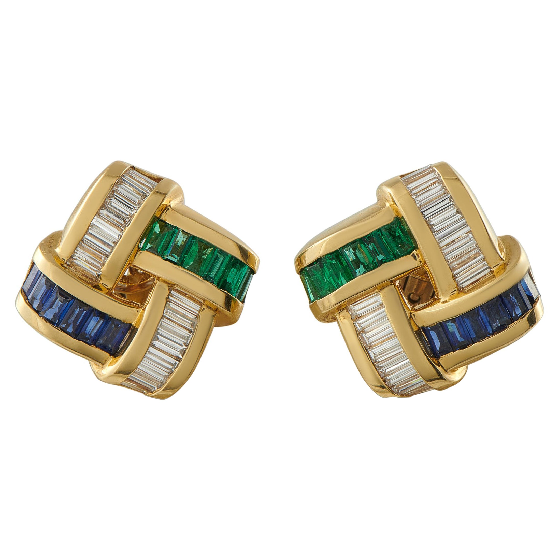 Diamond, Emerald, Blue Sapphire, 18k Gold, Yellow Gold