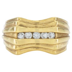 TIFFANY Co. 18K Gold 5.5mm Wide Diamond T Ring 7