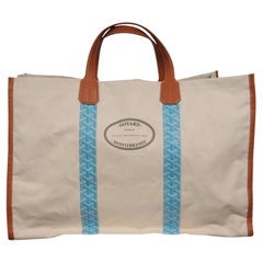A beautiful first-generation Louis Vuitton Neverfull GM in Damier Azur from the 2007 introduction collection. This early model features the now-discontinued Articles de Voyage stripe...