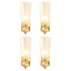 1950s Italian Pair of Wall Sconces in Brass and Opaline Glass