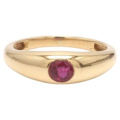 Antique 19th Century Georgian Style Cabochon Garnet 14K Yellow Gold Signet Ring