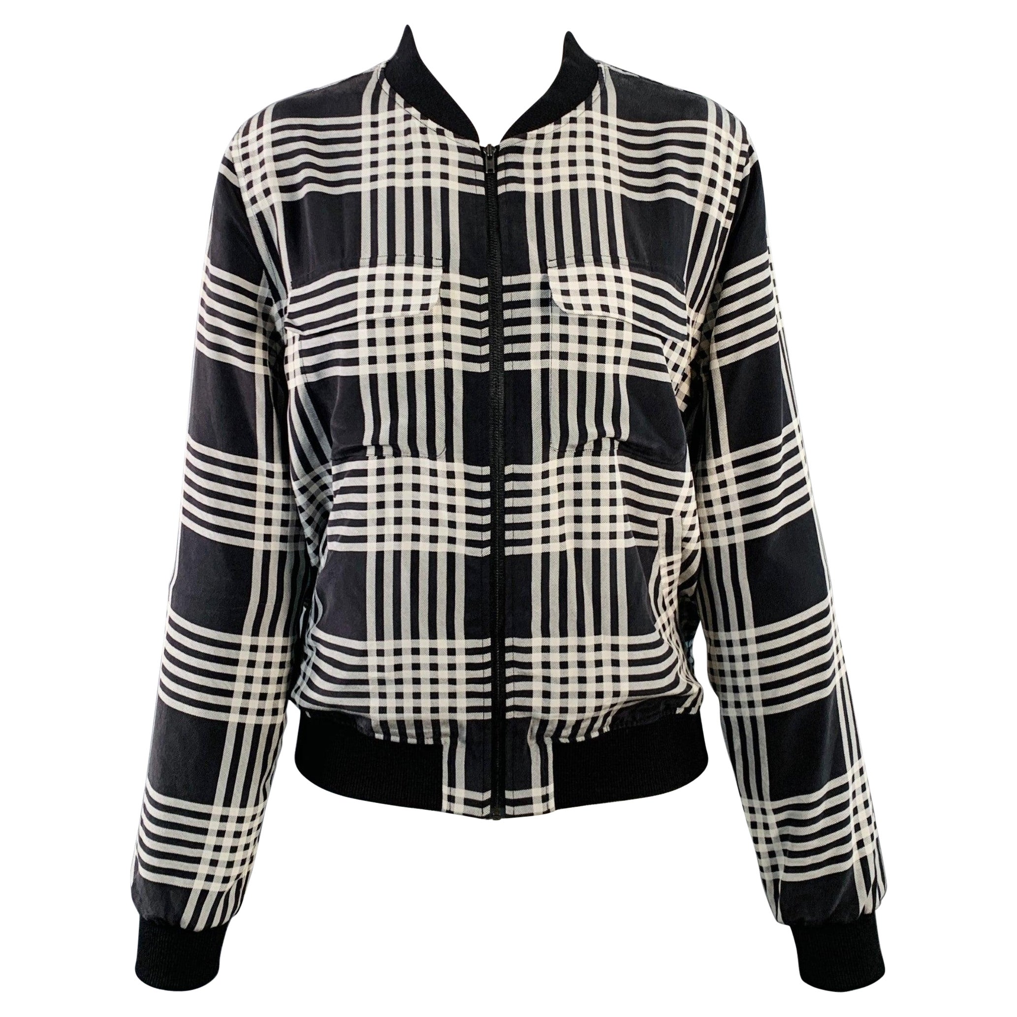 EQUIPMENT Size S Black White Silk Plaid Zip Up Bomber Jacket