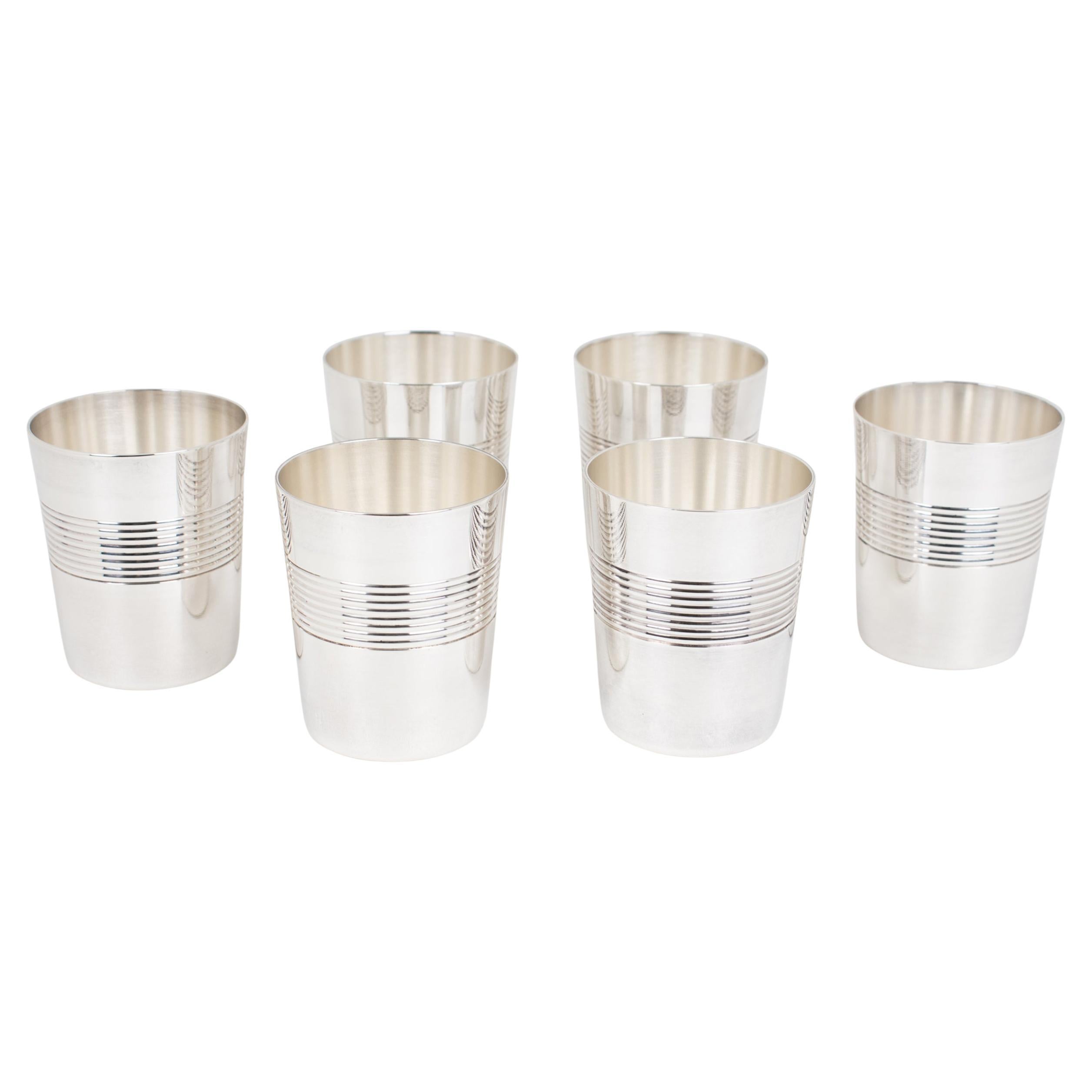 Art Deco Modernist Silver Plate Cocktail Cordial Cups or Shot Glasses by Ercuis