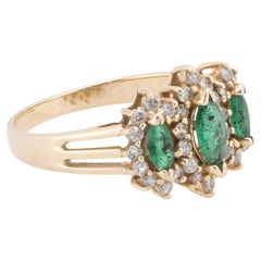 Emerald Diamond Oval Cluster Ring Platinum Stamped Circa 2000 Step back in time with this exquisite Edwardian-style cluster ring, a captivating piece that beautifully marri...