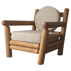Pair of French Art Deco armchairs, with rounded armrests and a low, enveloping silhouette. Reupholstered in an off white cotton chenille blended with alpaca, a fabric that will devel...