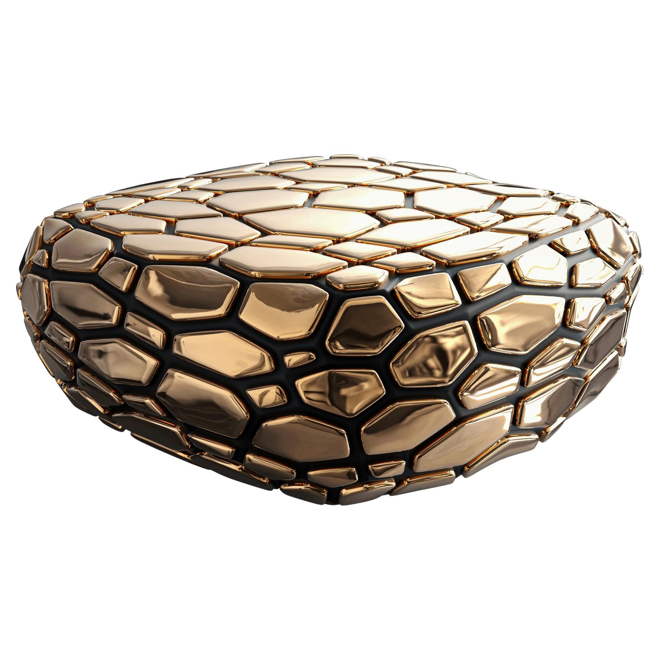 This low table features a unique "tear"-shaped metal base, available in four luxurious lacquered metallic finishes: bronze, gold, silver, and dark silver. The organic top is crafted ...