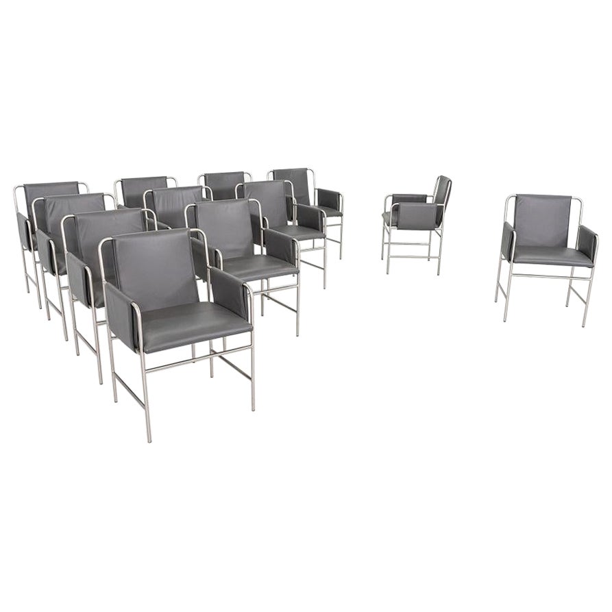 2014 Set of 12 Ward Bennett for Geiger Envelope Dining Chairs in Grey Leather