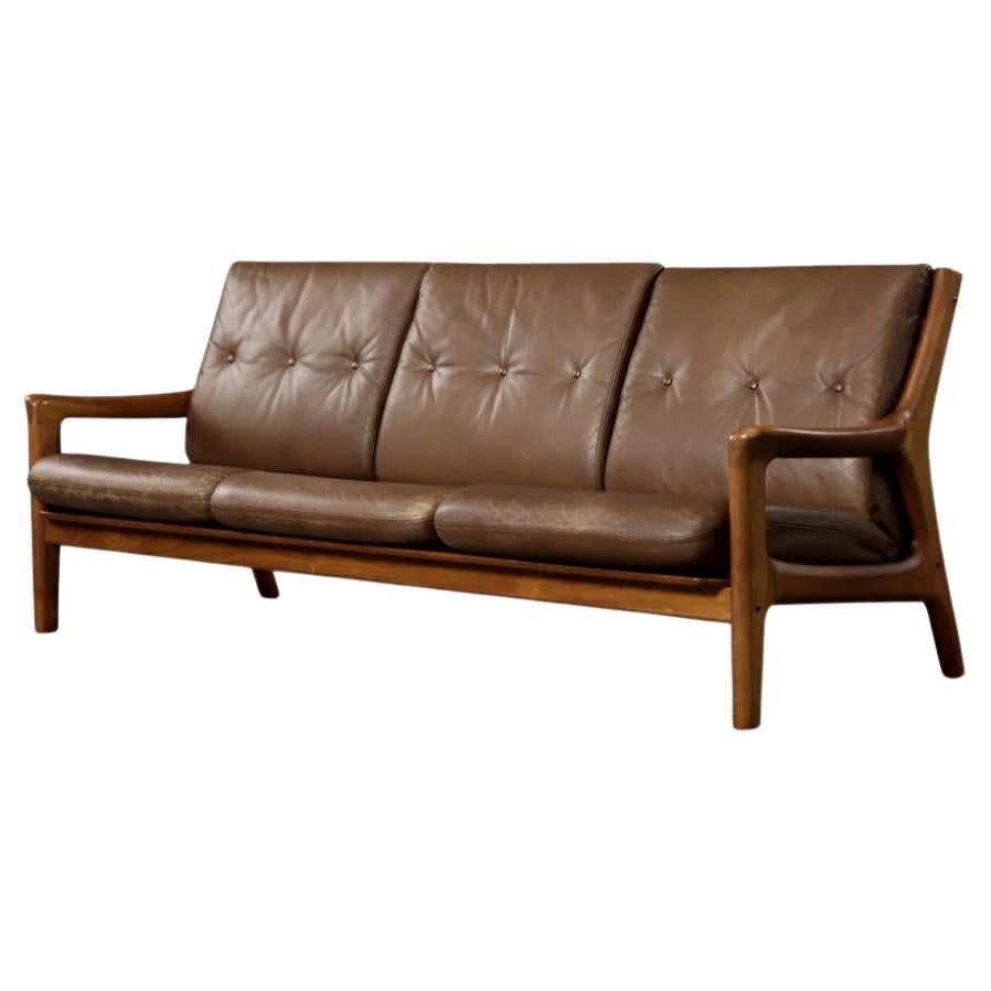 Vintage Mid-Century Danish Modern 3-Seater Brown Leather Sofa by Georg Thams