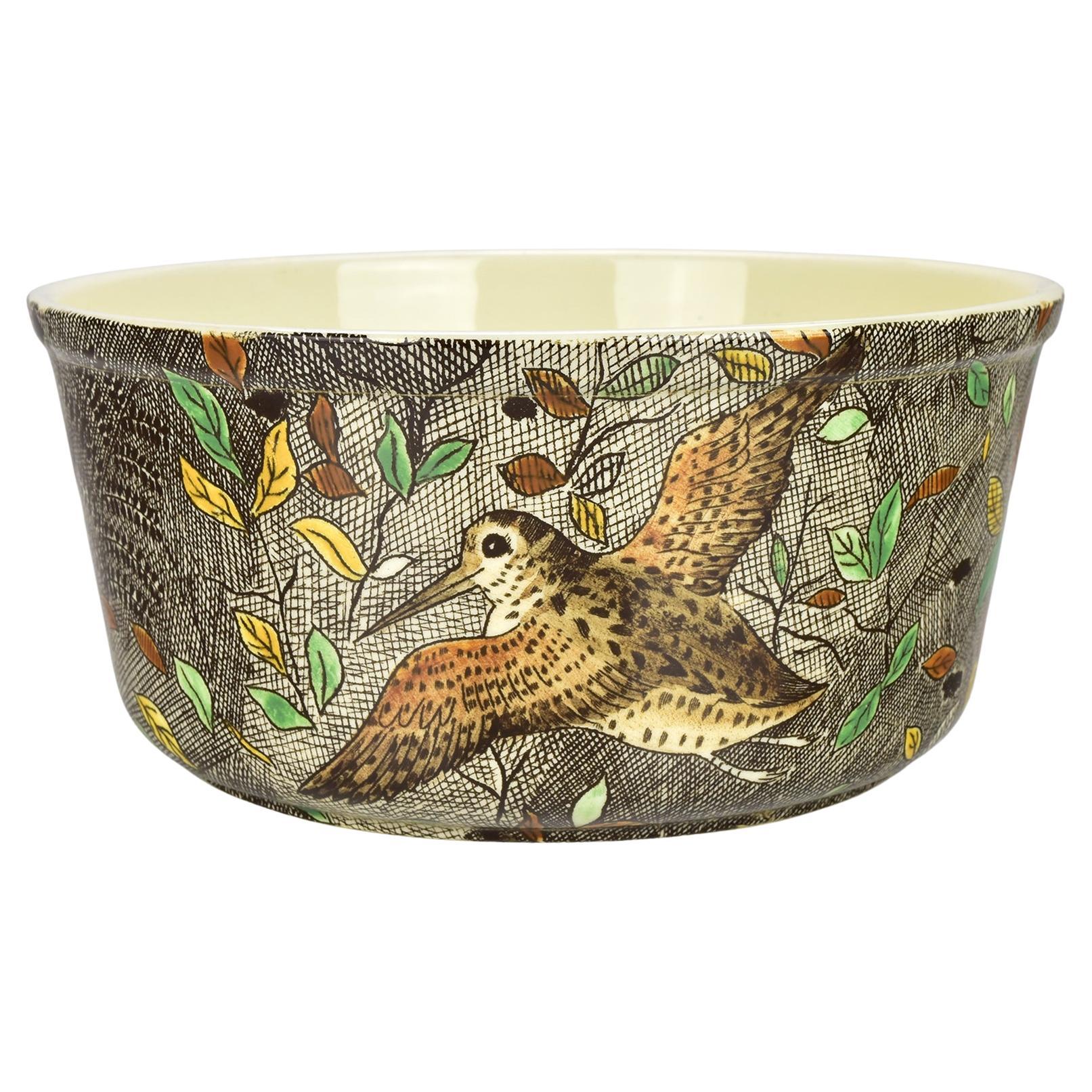 Gien Rambouillet Hand-Painted Ceramic Serving Bowl with Woodcock Motif
