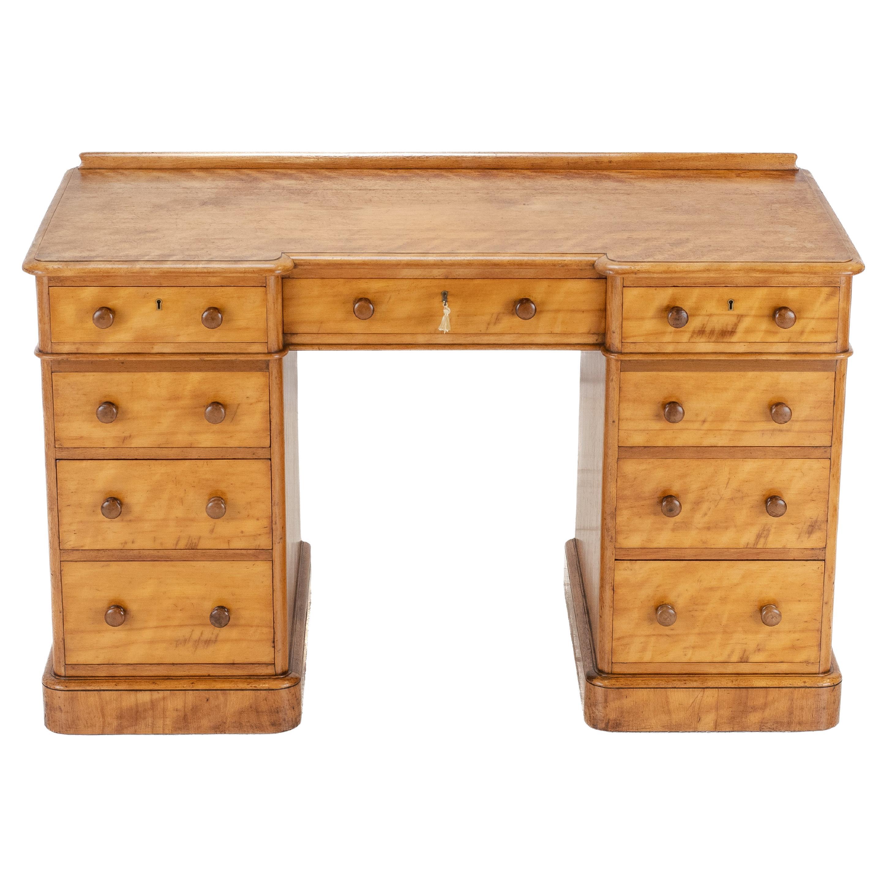 Son Satinwood Inverted Breakfront Pedestal Desk, c.1890 (Victorian c19th)