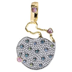 Presenting a rich and finely egg pendant adorned with foliage ornamentation encrusted with four garnets and four diamonds. The body of the egg features hand-engraved yellow polished ...