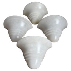 Five Vintage Italian Murano appliques in Vistosi style. Wall lights have 6 glass for each, blue alabaster glasses. Nickel metal frame. Period: late XX century Dimensions: 11,80 inche...