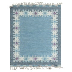 Scandinavian Handwoven Flatweave Rollakan Rug, Signed GS Mid-20th Century
