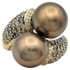 14K Gold 0.05 ct. tw. Diamond 3.5CT Smokey Topaz Color Stone Cocktail Ring