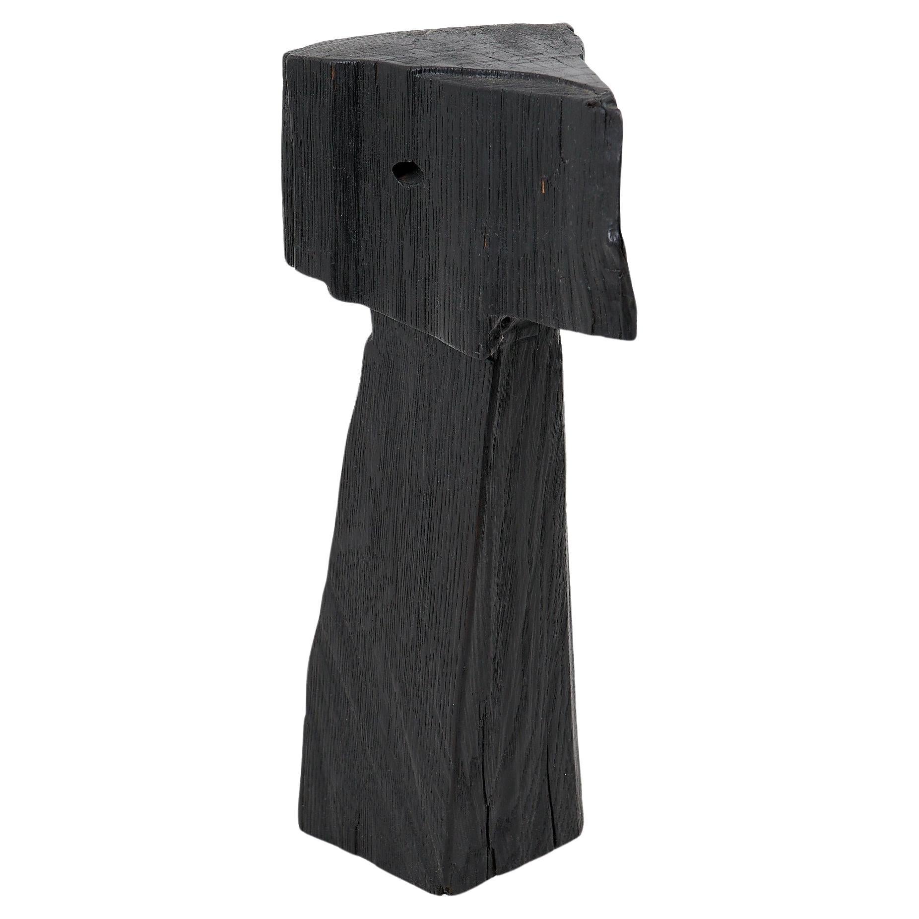 Sculptural Side Table, Burnt Black Oak Wood, Carved, Handmade, Logniture