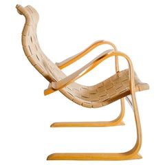 ‘Tank’ armchair, model ’37/400′, designed by Alvar Aalto in 1936. Manufactured by Artek in Finland, 1940s. Made from laminated steam-bent birch plywood, recently reupholstered in hon...