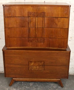 American of Martinsville Mid Century Modern Ash Burl Armoire Tallboy Dresser 62"