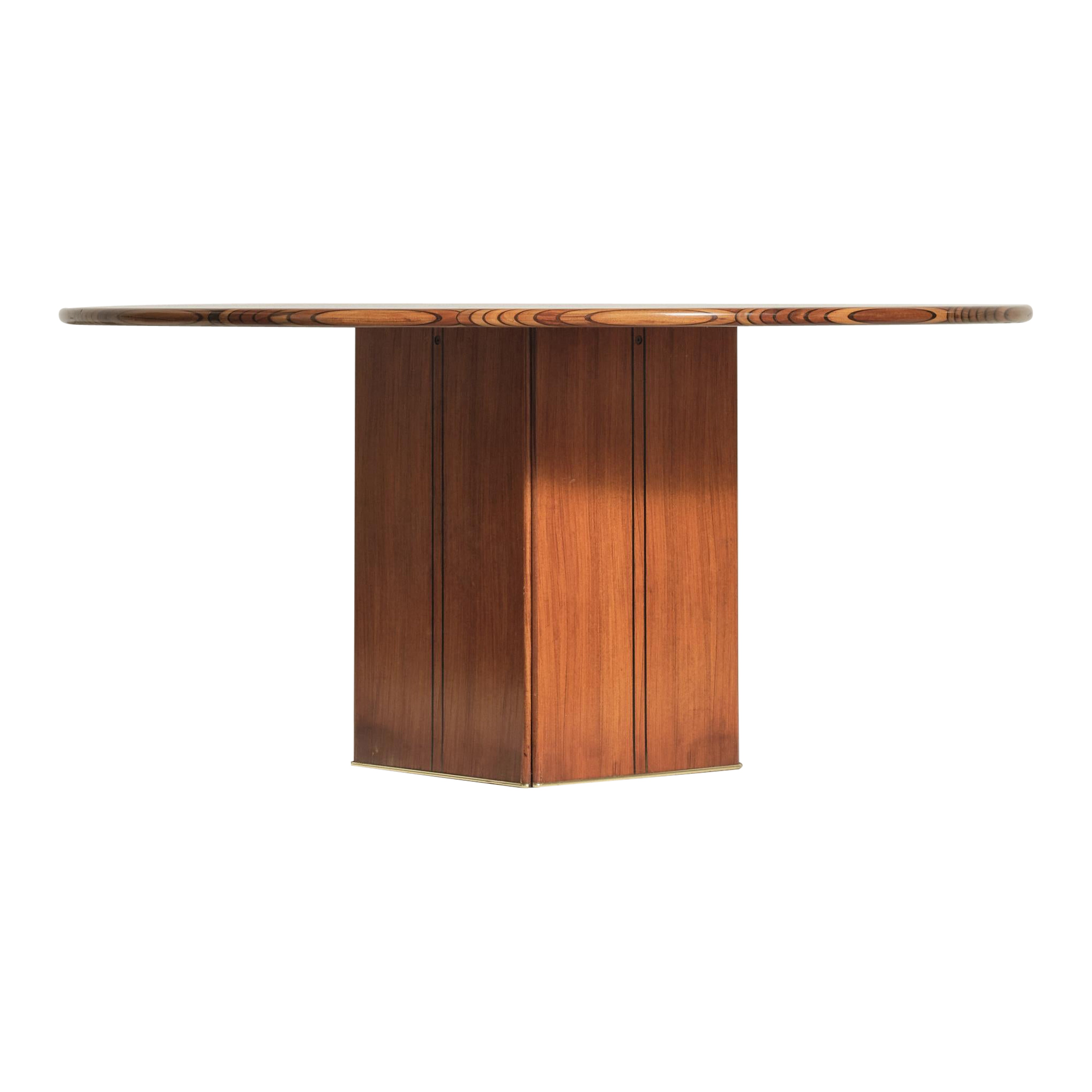 This highly decorative dining or centerpiece table was designed by the renowned duo Afra and Tobia Scarpa and manufactured by B&B Italia in 1974. The table features a dark brown wood...