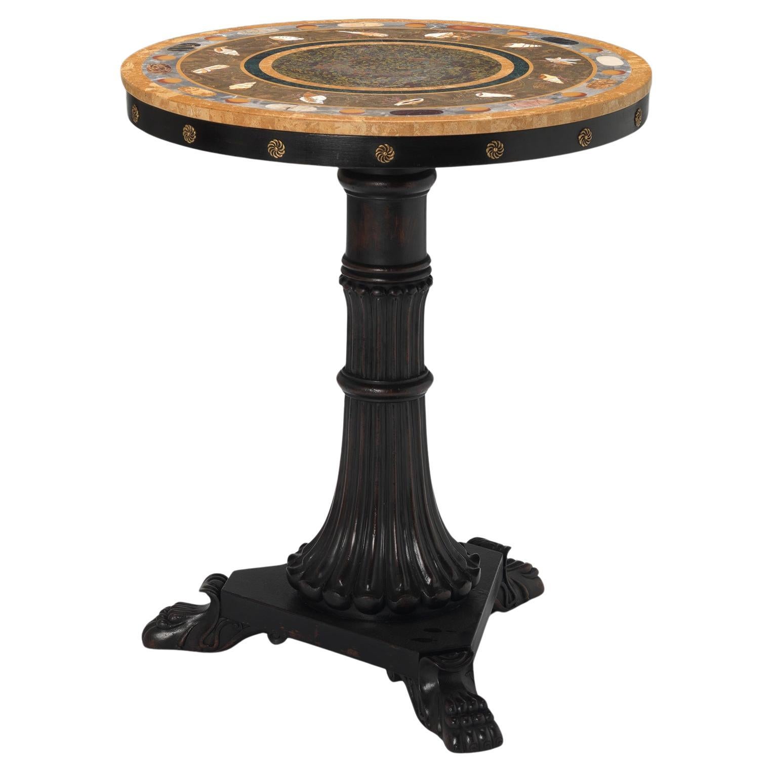 Neoclassical Italian Walnut Inlay Tripod Chess Games or Side Table