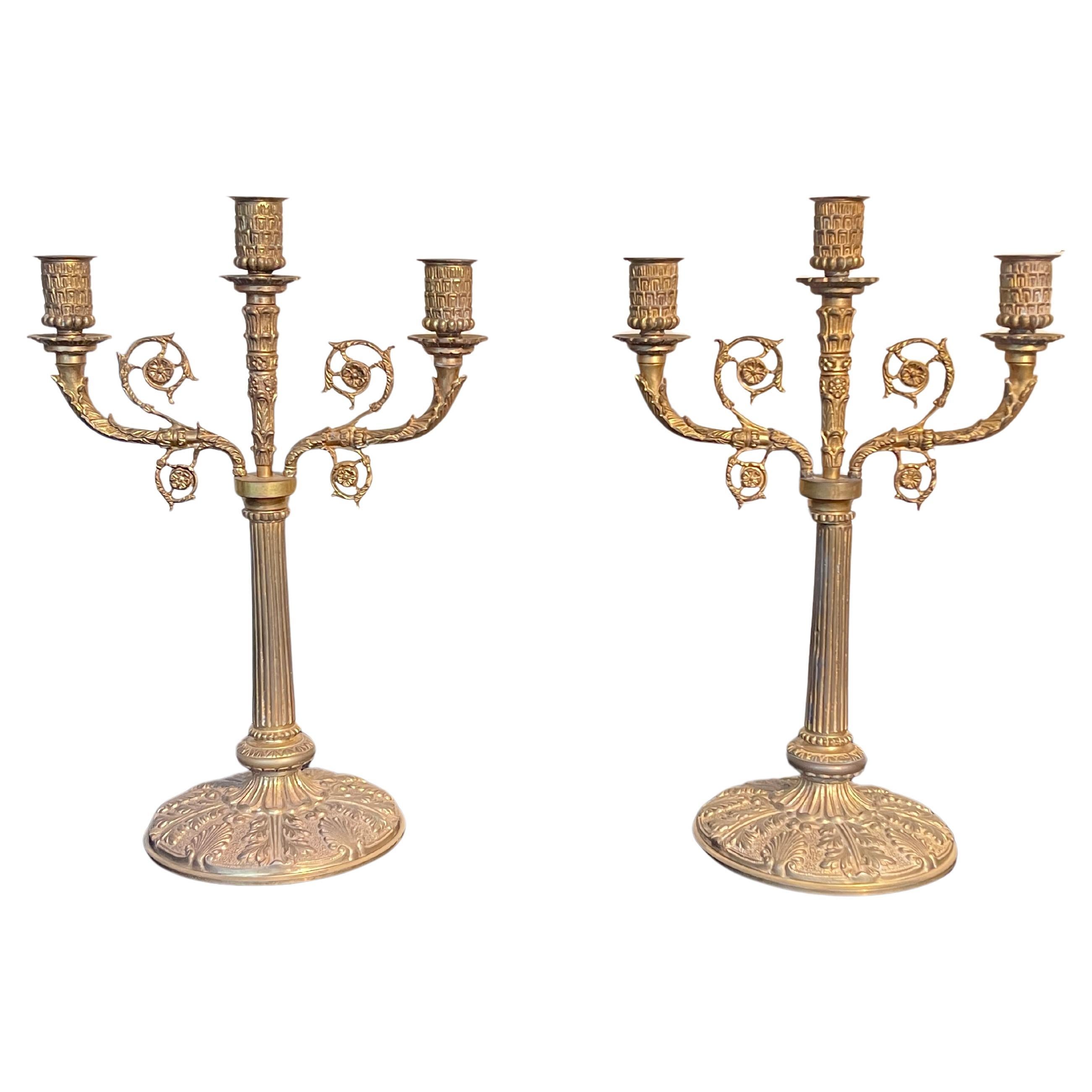 Pair of Antique Gilt Bronze Candelabra - Rococo Style, 20th Century