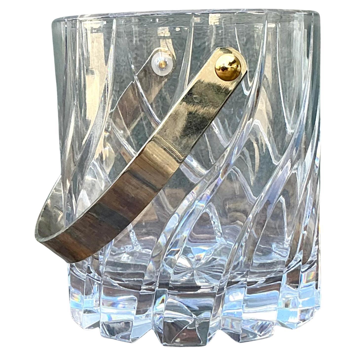 Mid-Century French Cut Crystal Ice Bucket with Handle