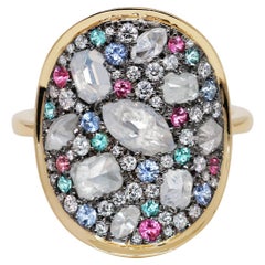 I just love the beautiful colors in this ring. The ring is a size 7 and just stunning. The main stone is a fancy cut oval cut stone and is 16.60 carats. The stones are from Brazi...