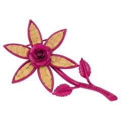 Vintage gold tone pink enamel flowers designer brooch