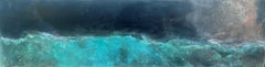 Shades of blue, green, and white suggest a peaceful landscape. The painting reflects the quiet, expansive spaces in nature that always draw artist Kajal Zaveri....