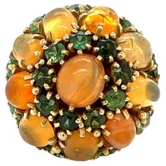 1863 Bombe Ring natural Gems Seed Pearls solid 18K Gold Ø US5.75 / 1.7 gr