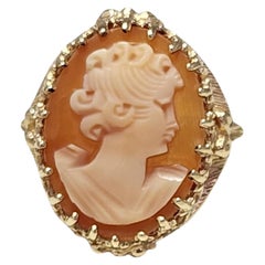 Victorian 18 Karat Gold Chalcedony Portrait Cameo Oval Massive Cocktail Ring