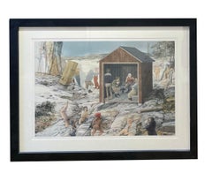 Title: British Estuary Ferry Shed and Distant Harbour with Figures Watercolour Painting By Tony Herbert (1927-2024) Medium: Watercolor on artists paper Size: 11 x 15 inches Condition...