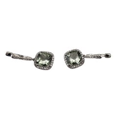 These earrings are just gorgeous! Each earring has a 9.2 x 7.3 mm Oval Cut Color Changing Sapphire. Altogether they total 5.65 carats. They are surrounded by diamond cut green sap...