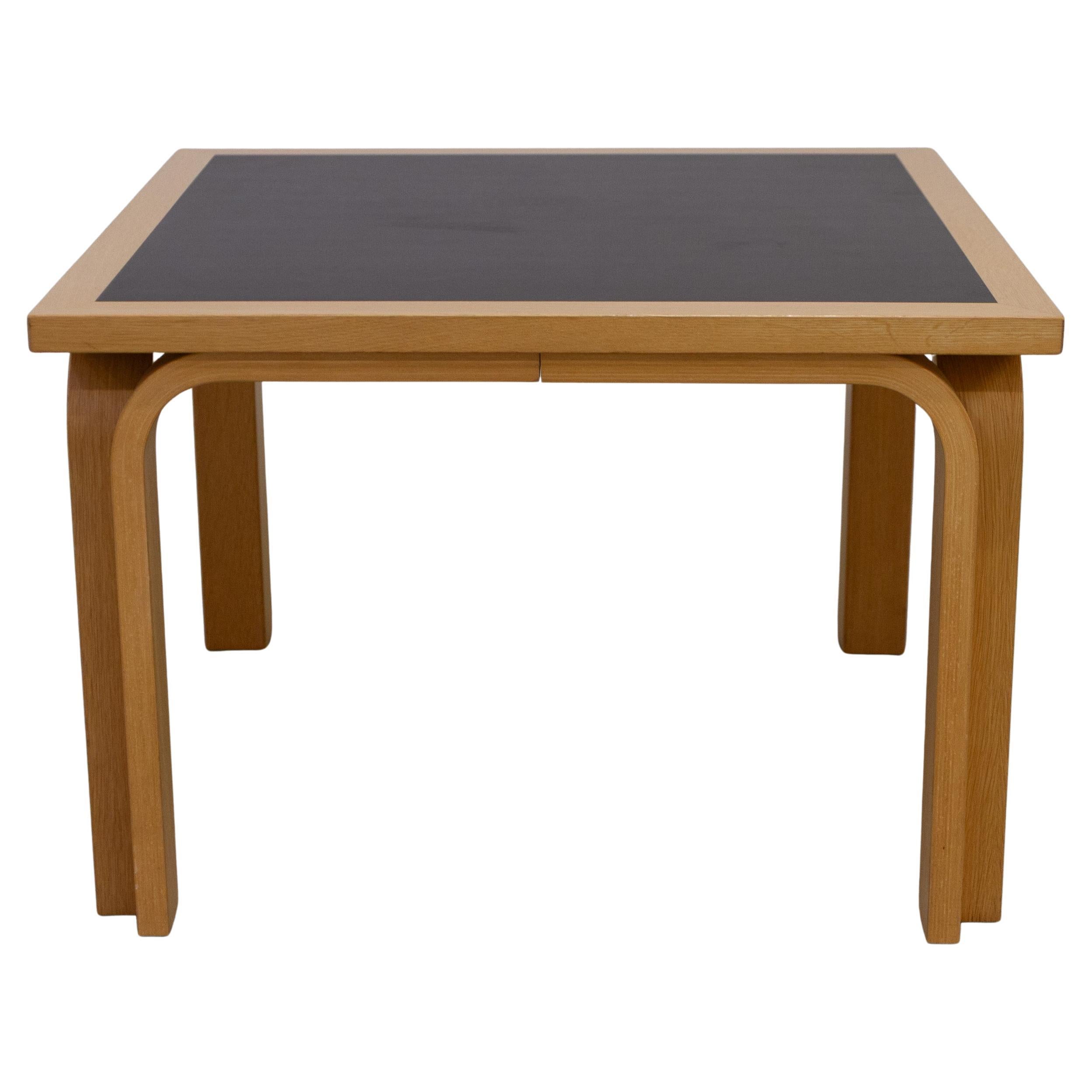 Mid-Century Magnus Olesen square table by Rud Thygesen & Johnny Sørensen with bent birch legs and black formica inset top. In original condition with visible wear including some mark...