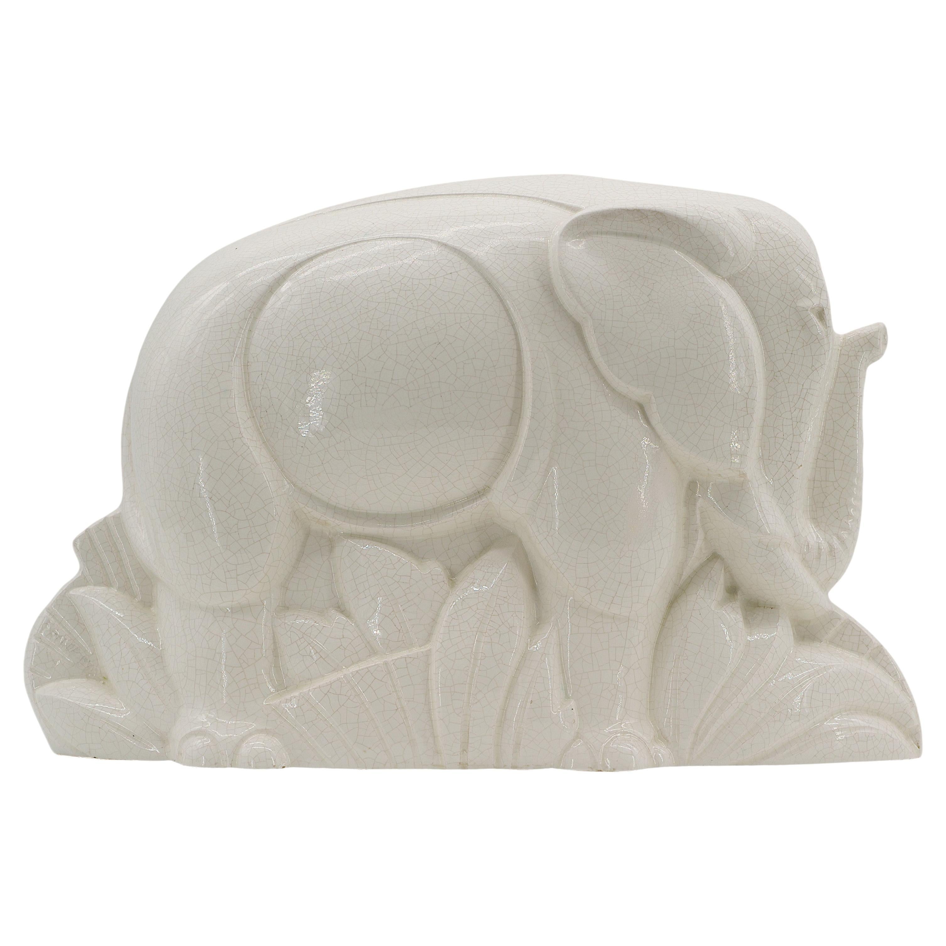 A striking and rare large French Art Deco ceramic elephant designed by Charles L...
