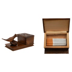 This rare writing desk and matching chair showcase Carlo Bugatti’s imaginative, eccentric brilliance - a strikingly unconventional choice for bold interior curators and collectors with a taste for the extraordinary. Created circa 1910, the set features Bugatti’s iconic fusion of exotic materials and architectural fantasy: walnut, vellum, pewter and bone intarsia, punched copper, and long silk tassels, all composed into forms that feel both ancient and avant-garde. The desk showcases six small drawers bearing enigmatic, glyph-like script, while lacquered oak acorn...